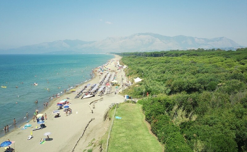Baia Domizia Camping Village znajduje się w południowo-zachodniej części Półwyspu Apenińskiego nad Morzem Tyrreńskim.