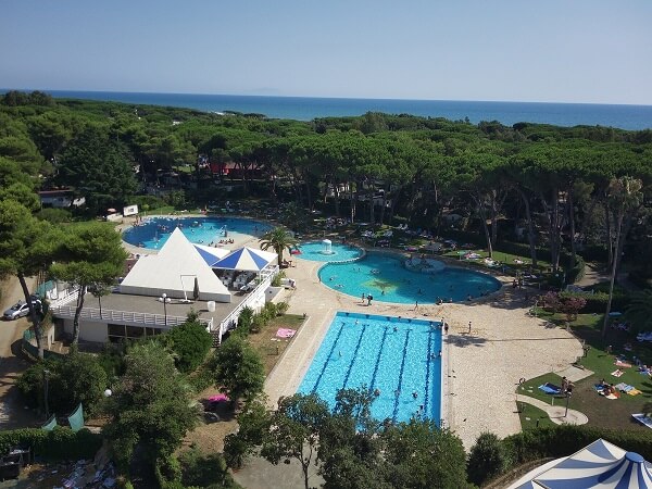 4 gwiazdkowy położony jest w zatoce Gaeckiej, w sercu Parku Narodowego Garigliano, dzięki czemu otoczony jest piniowym lasem z mnóstwem cienia i całą masą atrakcji. Luksusowy kompleks basenów, piękna szeroka plaża, bogate zaplecze usługowe